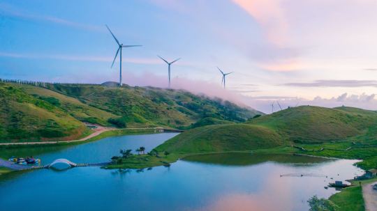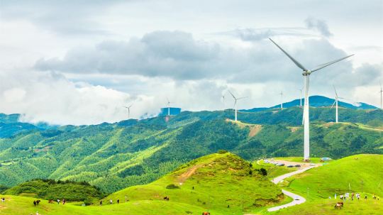 仰天湖大草原景区由仰天湖与大草原两个板块组成,草原腹地的仰天湖是第四纪冰川期馈赠的一个死火山口,四季不断流的泉眼滋养着整片草原。草原山脊上,矗立着蜿蜒百里、高耸入云的动力风车,白色风车与绿草相映成趣,构成了独特的草原胜景。