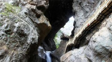 金鞭溪峡谷是景区中开发最早的区域,一条清澈的溪流从谷中穿过,两边山峰耸立,放眼望去满目苍翠。这里还是经典版《西游记》的取景地之一,影迷们可以来这里看到水帘洞、劈山救母等经典场景。